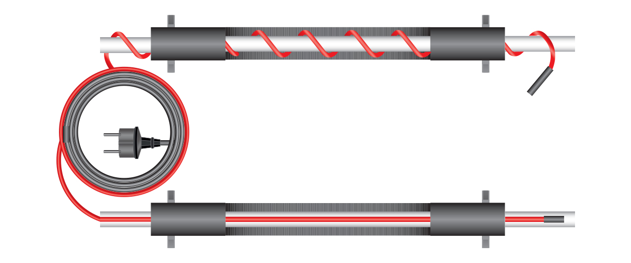 ВНИМАНИЕ! Для трубопроводов диаметром менее 3/4 рекомендуем устанавливать нагревательный кабель на наружную поверхность трубопровода.